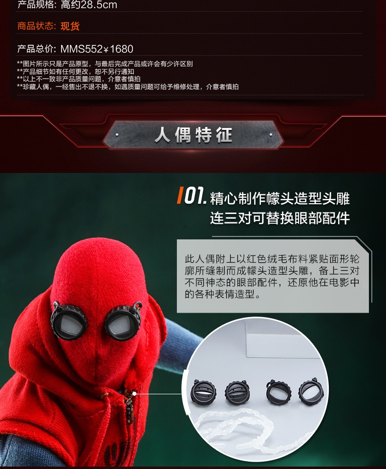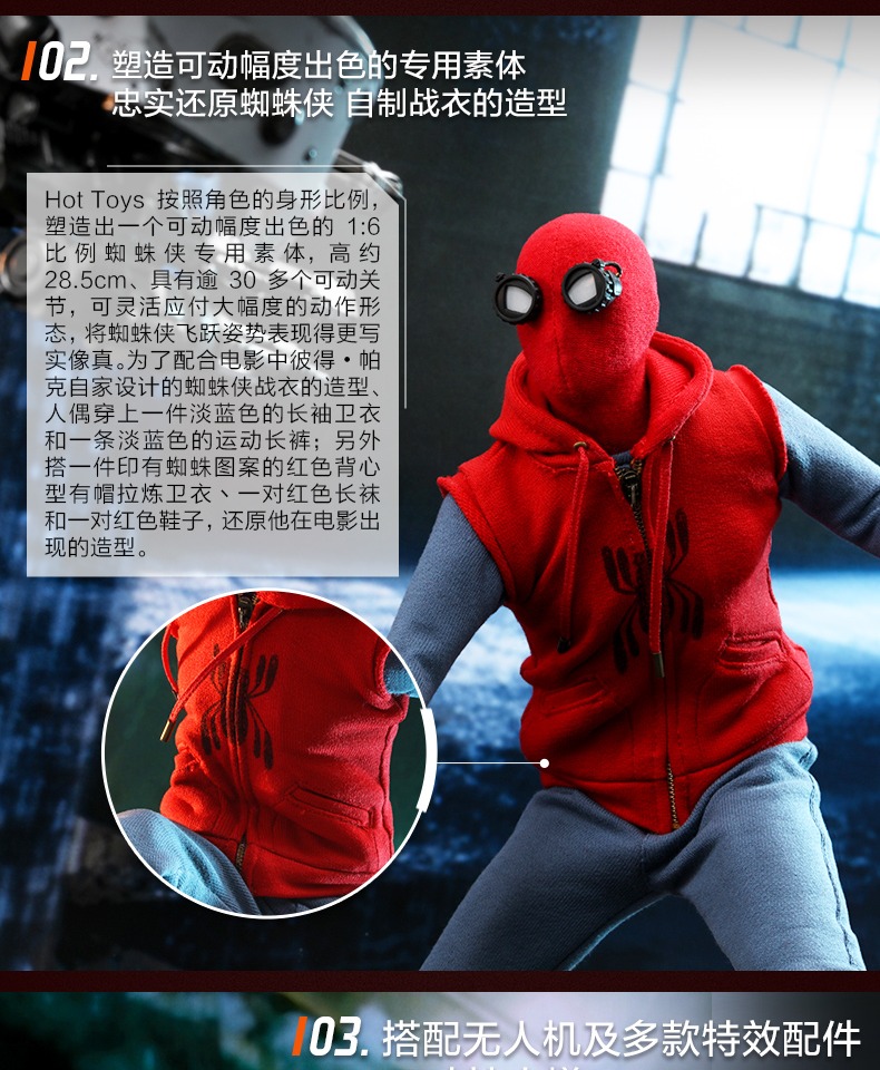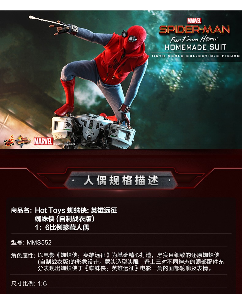 Hot Toys 蜘蛛侠 蜘蛛侠自制战衣版1:6比例手办兵人人偶模型玩具