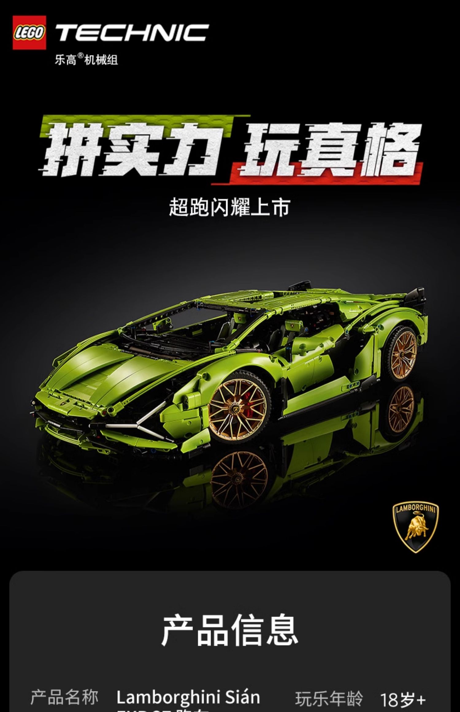 LEGO乐高机械组42115兰博基尼跑车拼装潮玩积木益智收藏礼物
