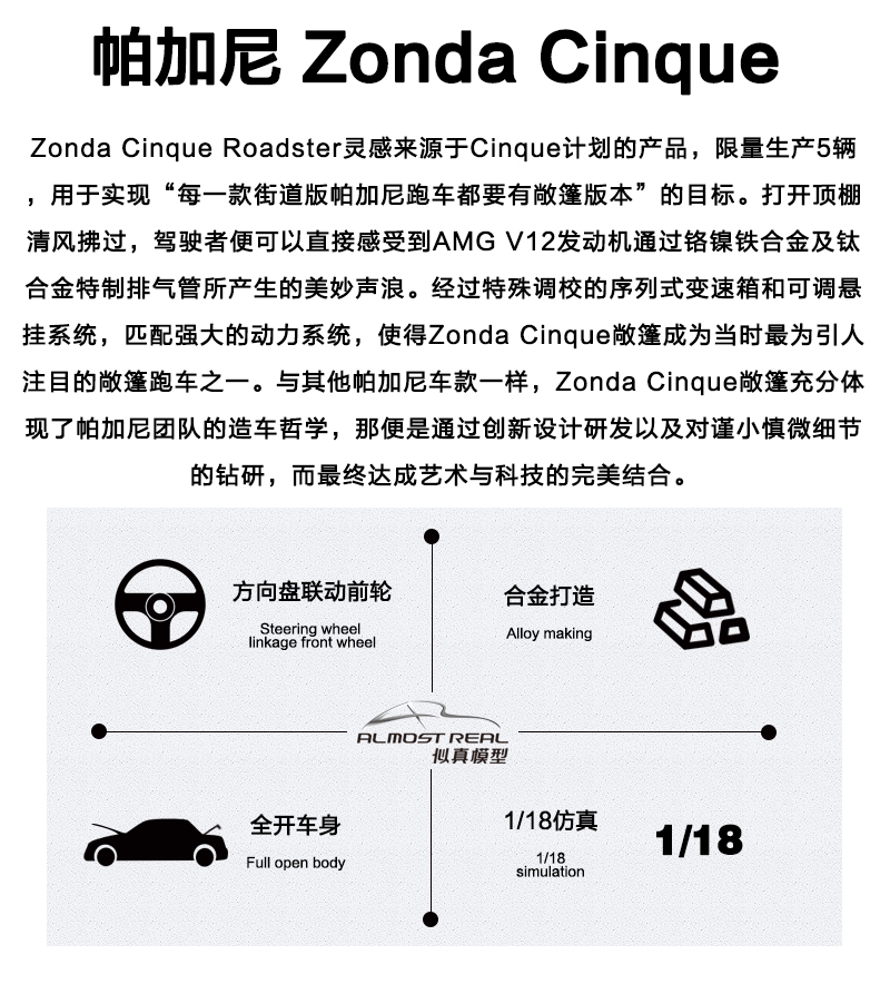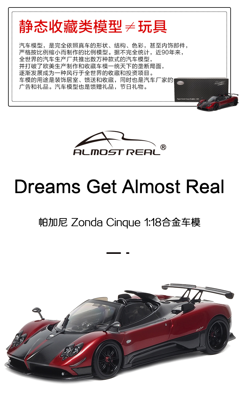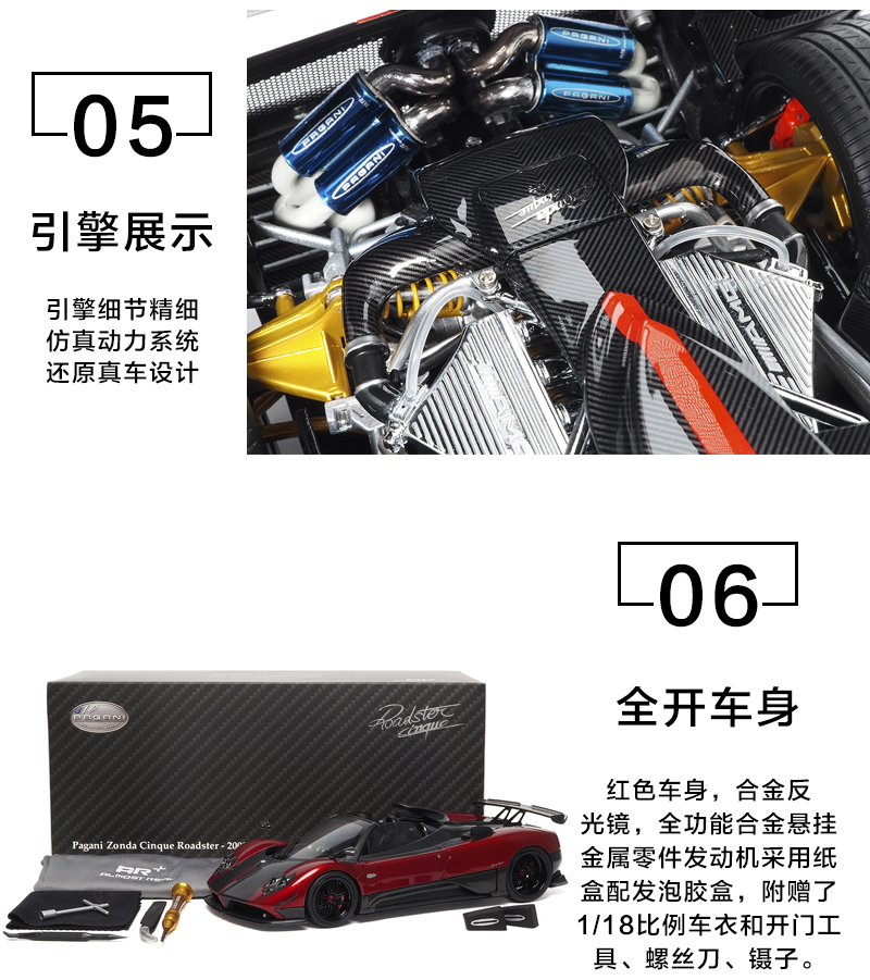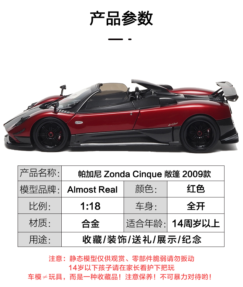 1:18帕加尼 Zonda Cinque 敞篷合金全开车模 AR+汽车模型