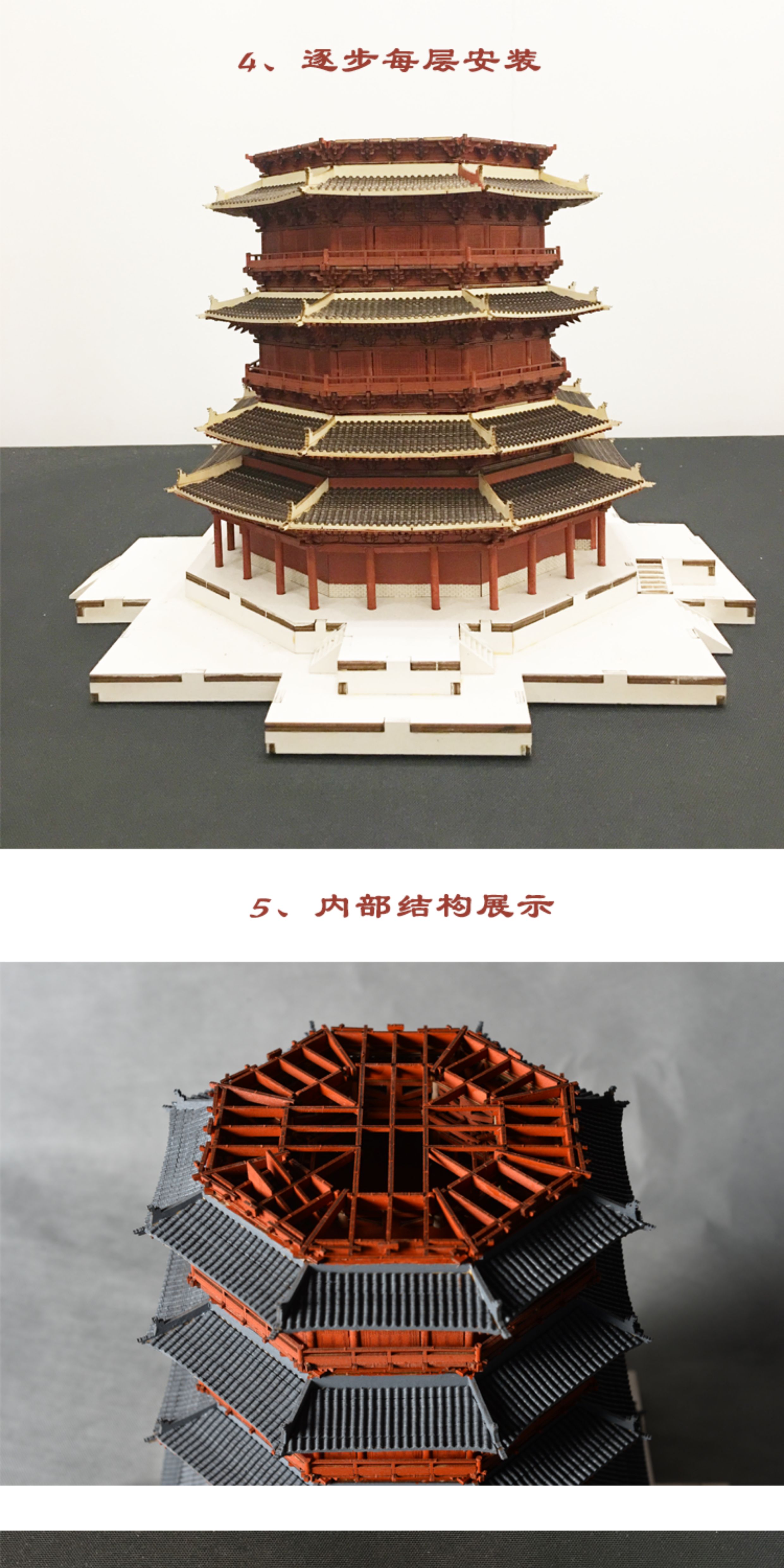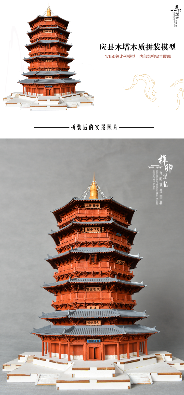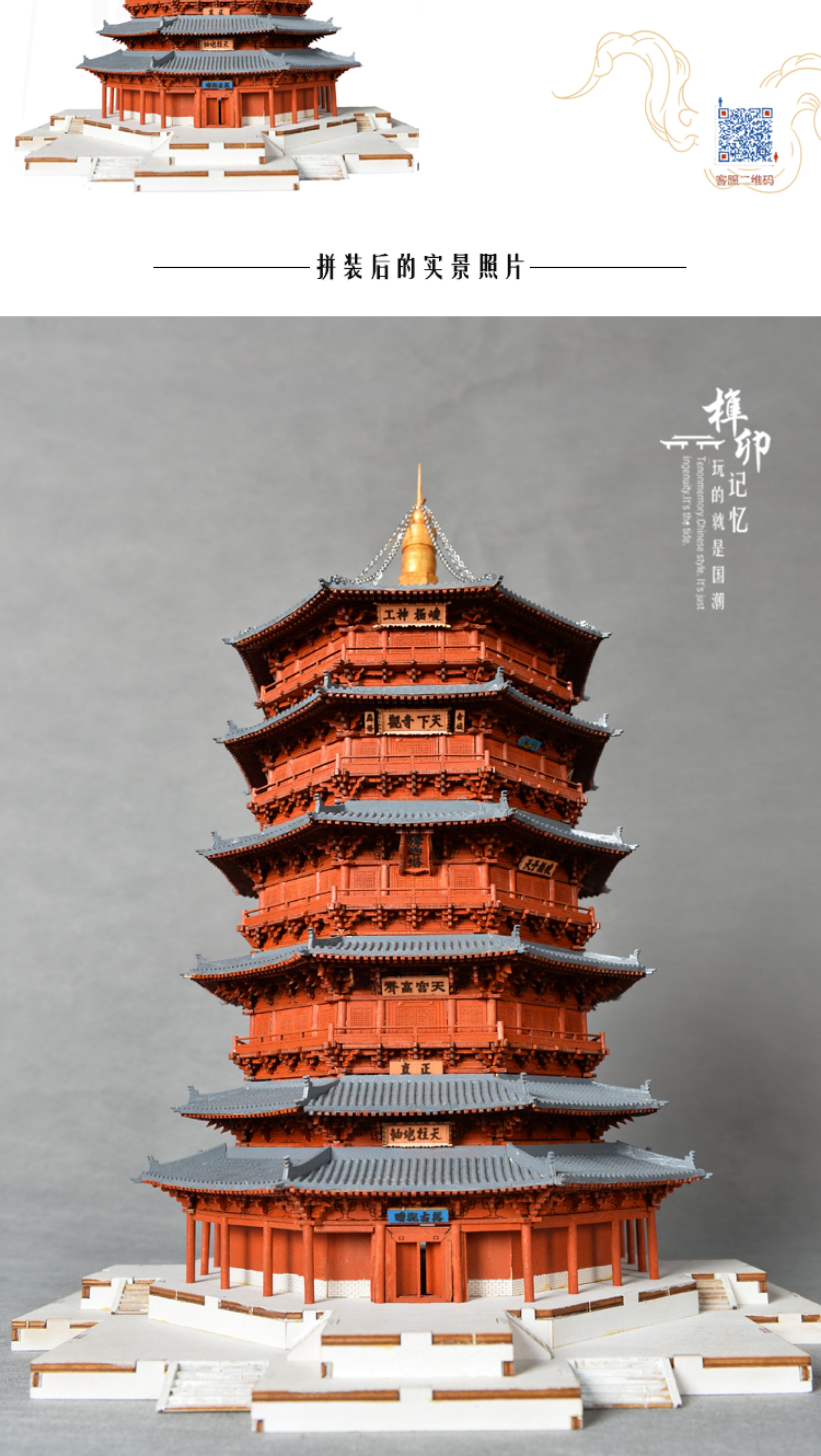 应县木塔模型中国古建筑辽代楼阁微缩拼装木质手工3D立体DIY