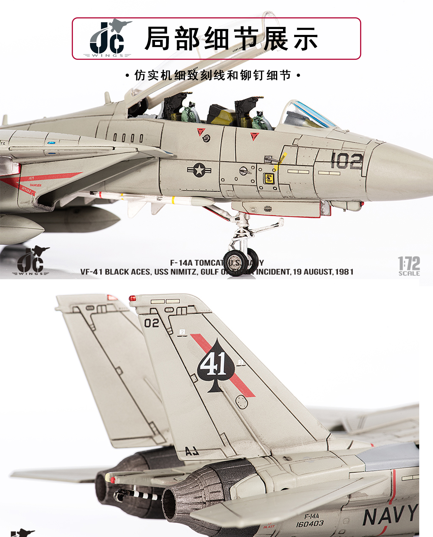 成品JC WINGS 1/72美国海军VF-41黑王牌F-14A雄猫战斗机模型F14
